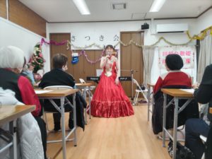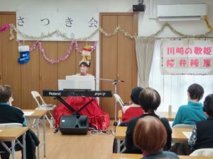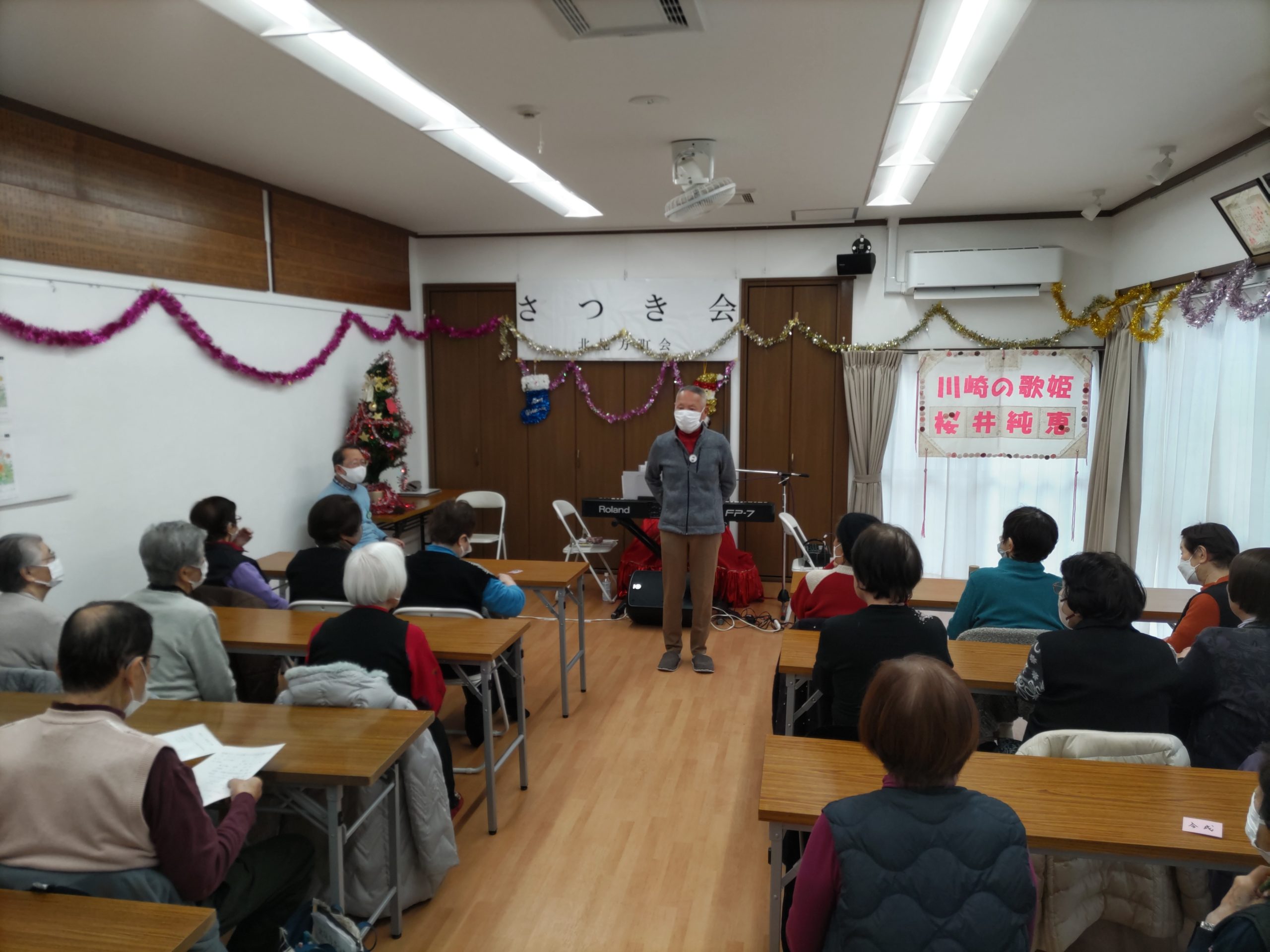 私のピアノ伴奏で「さつき会の歌」を歌ったあと、私の弾き語りでクリスマスソングや唱歌などを一緒に歌って楽しみました。