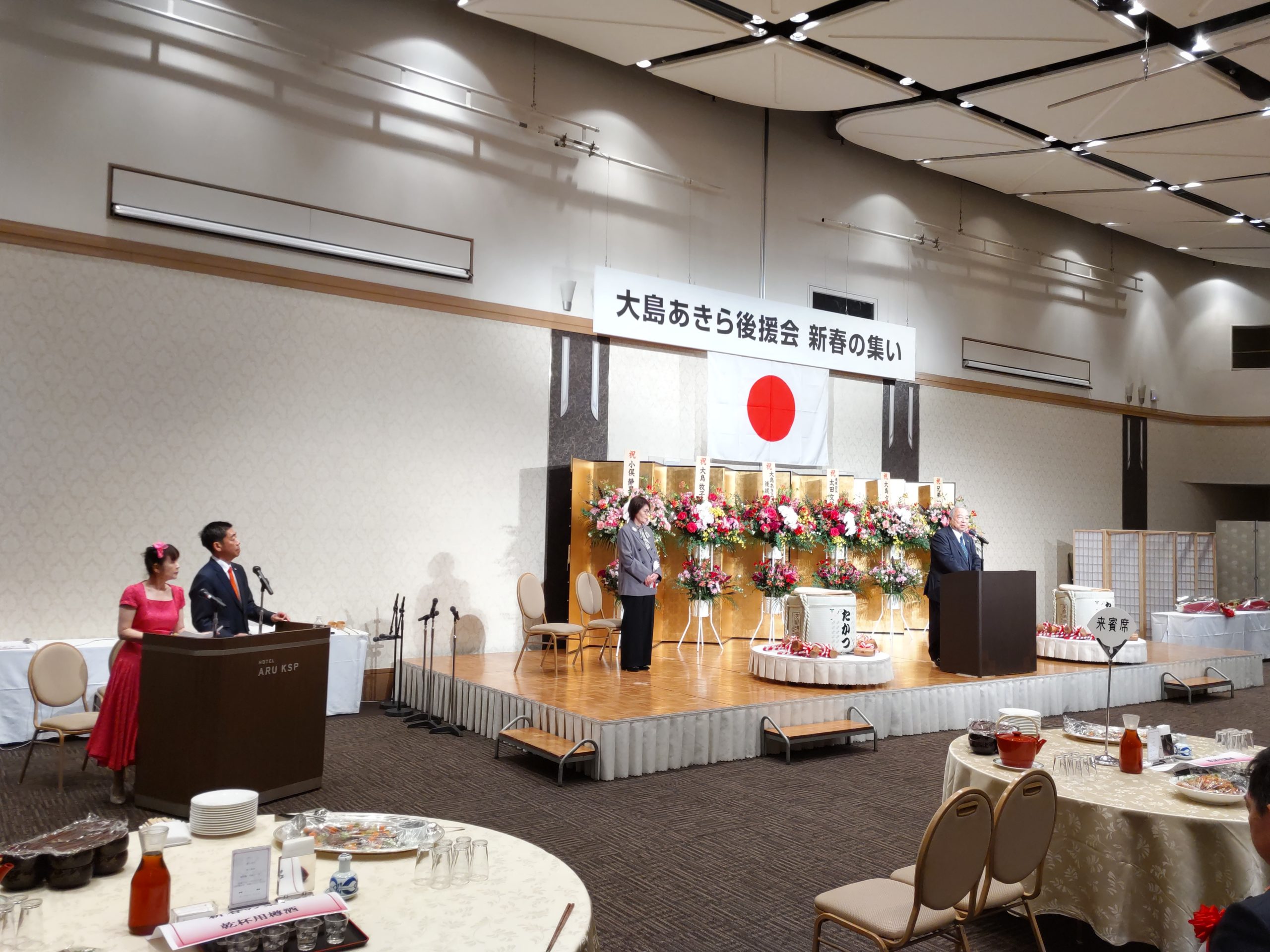 2026年1月18日、ホテルARUケイエスピーで行われました「大島あきら後援会新春の集い」にて司会の大役をつとめさせていただきました。今回も、田中伸一さんとのツイン司会により、無事最後までこの会を進行いたしました。 川崎市議会議員の大島あきら先生。新春恒例の集い、盛会誠におめでとうございました!
