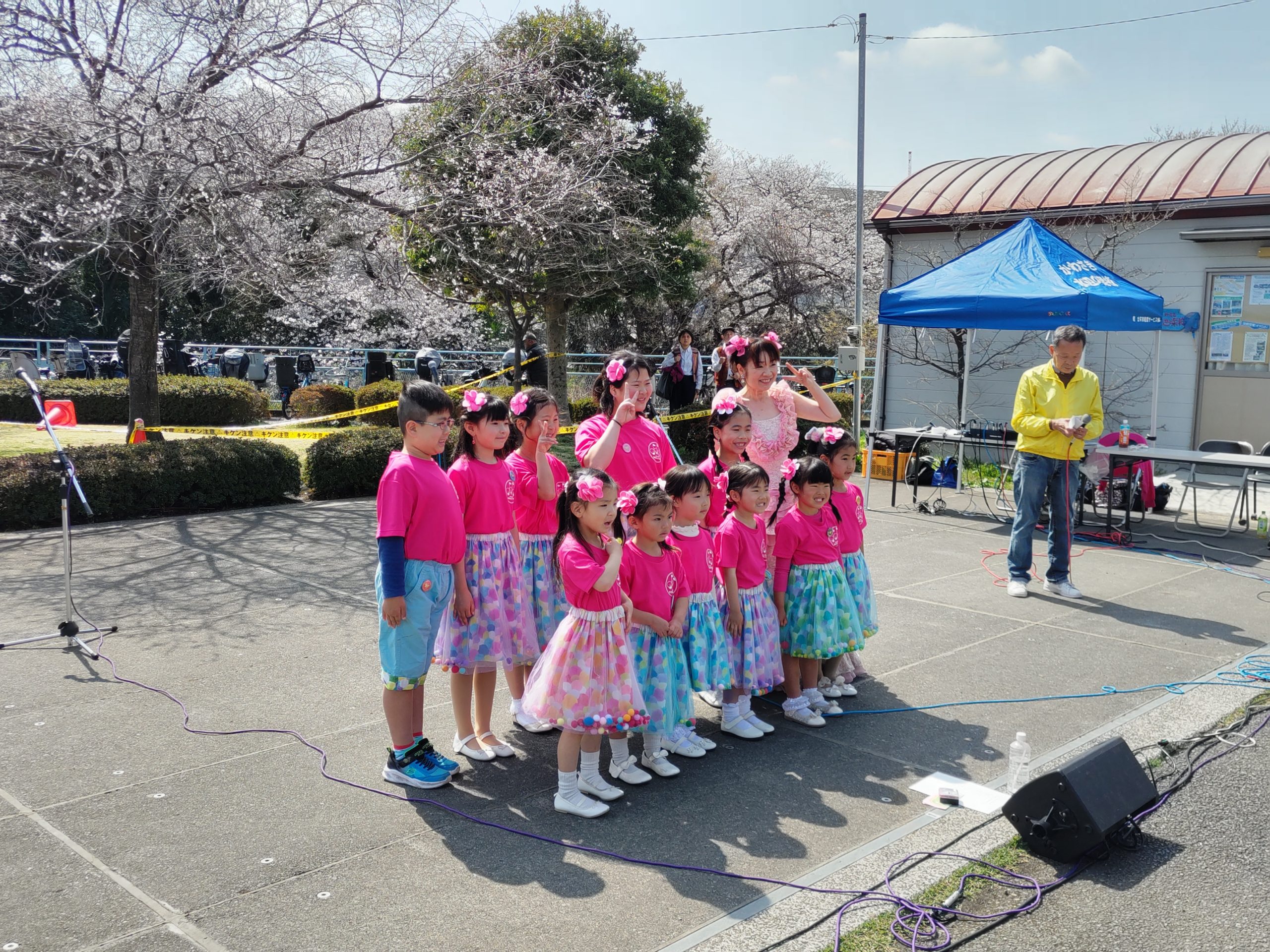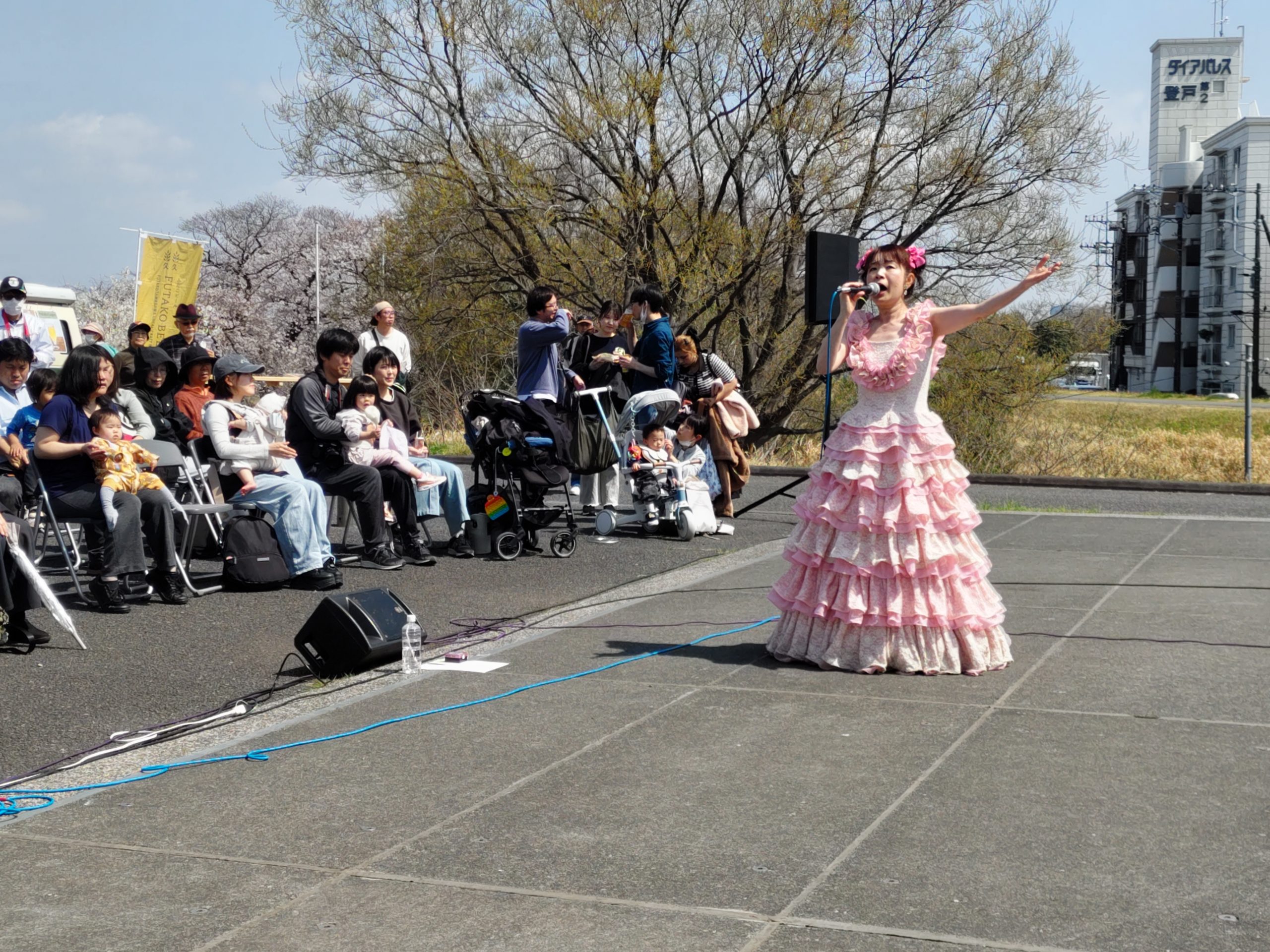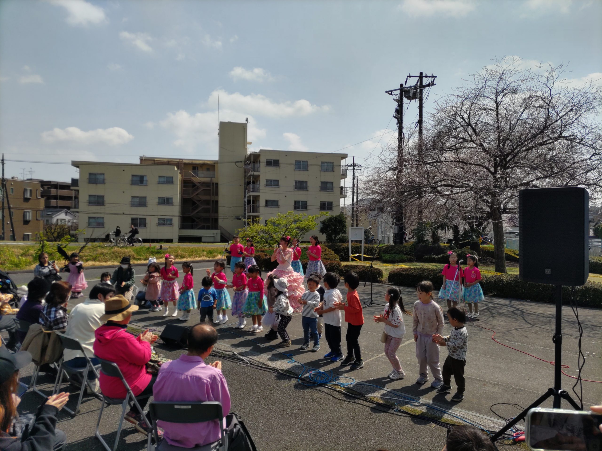2026年3月28日に開催されました『第21回多摩川桜のコンサート』。晴れましたのですべての演目が行われ、多くの観衆が二ヶ領せせらぎ館前広場に集いました。青空のもと桜の下で演奏するのは最高です。