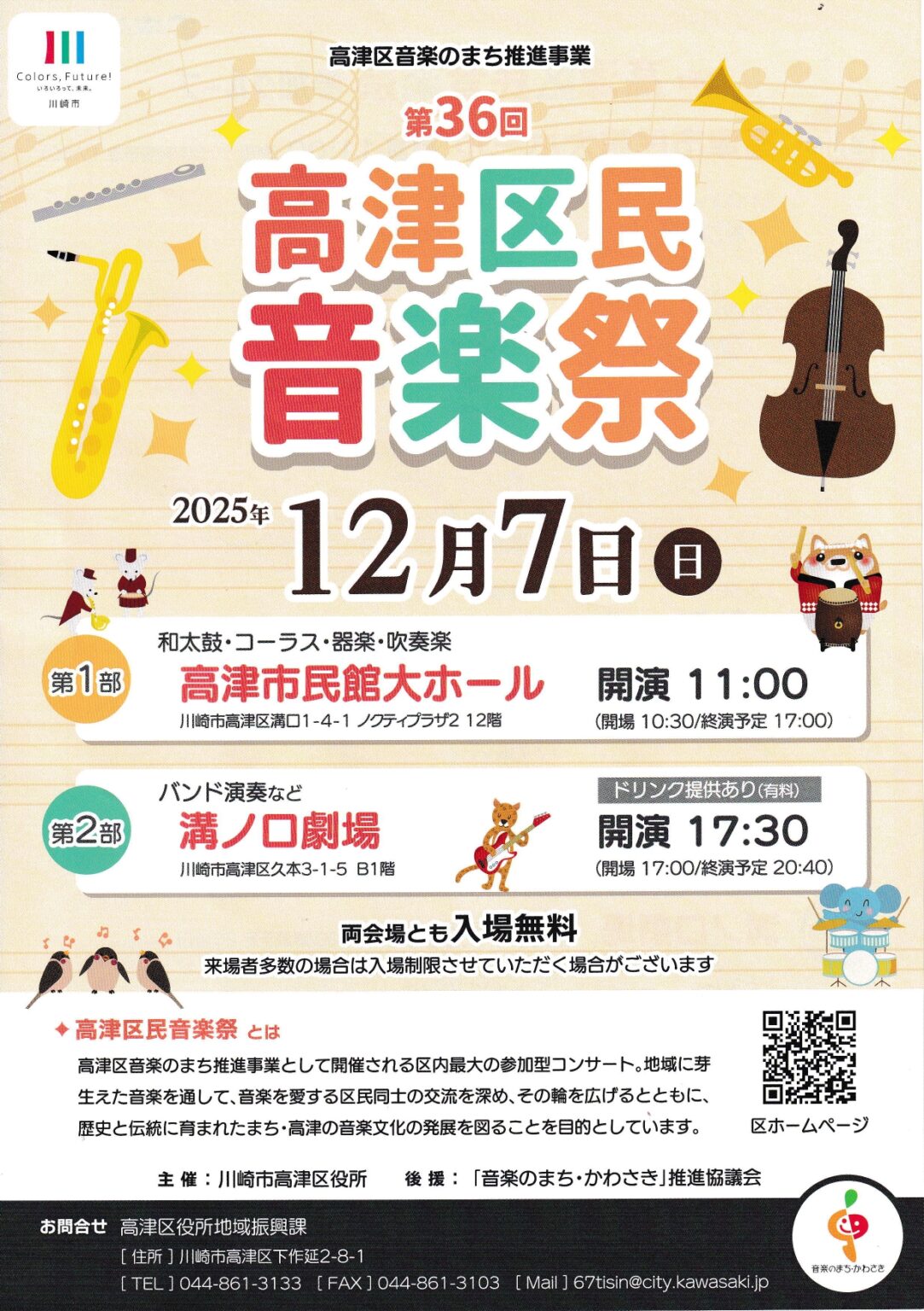私の指導する女声コーラス『フラワーコーラス』が、高津区民音楽祭に参加し童謡メドレーと他1曲を歌唱します。
