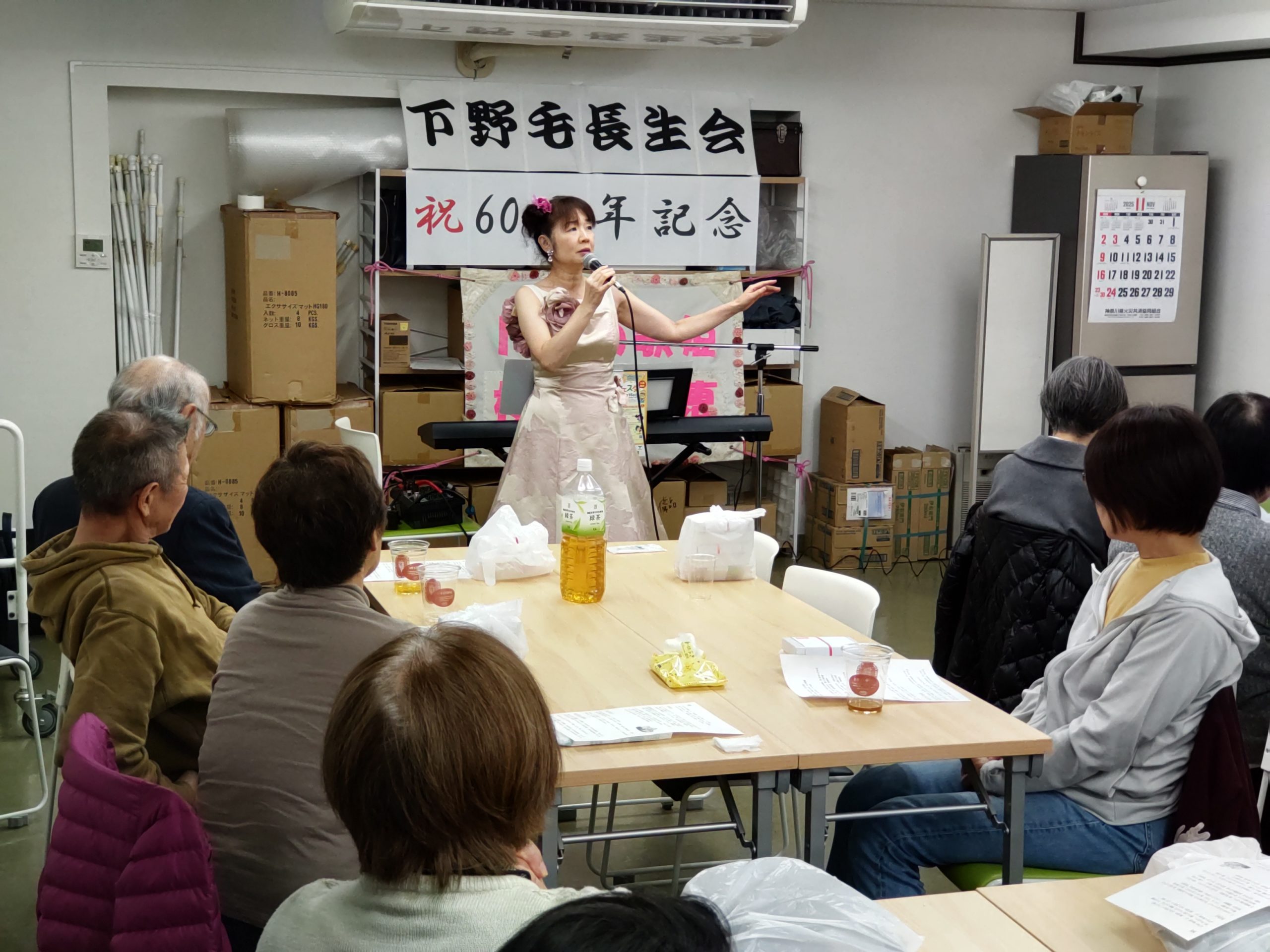 2025年11月11日、下野毛工業会館で開催されました「下野毛長生会60周年記念」のアトラクションで演奏させていただきました。下野毛長生会の皆様にお目にかかれるのは約1年8か月ぶり。ほとんどの会員様が集い、昼食を食べたり会話したりいっしょに歌ったり。楽しい時間を一緒に過ごしました。