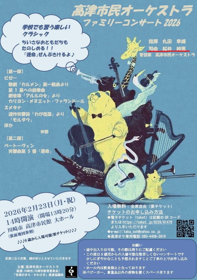 【コンサート】2月23日 高津市民オーケストラ ファミリーコンサート2026